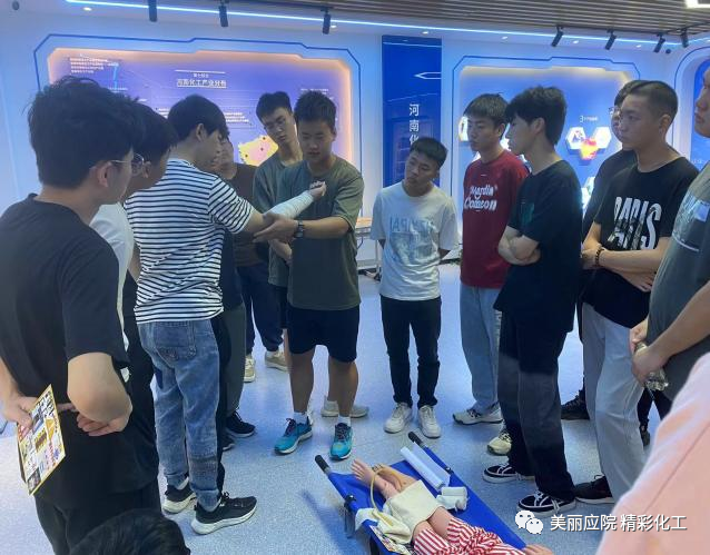 最后,生产事故应急救援大赛备赛队员为大家展示了心肺复苏、止血包扎、灭火、呼吸机的穿戴等救援及逃生技能。