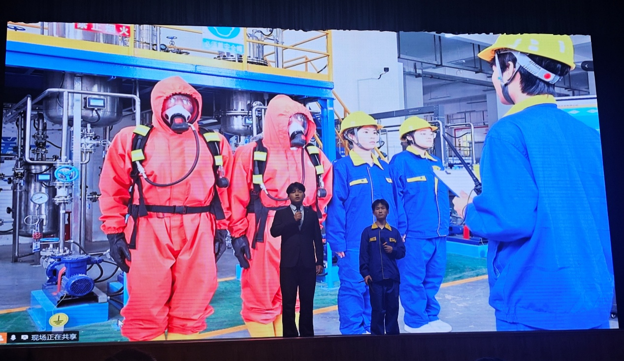 在精彩的现场展示环节中,买球体育官方网站以“煤制甲醇工艺分离器法兰泄漏应急处置”为主题,呈现了一场高水平的技能演练。演练模拟了法兰腐蚀引发泄漏的紧急场景,学生团队严格按照现代化工HSE应急处置法则,通过“侦检、隔离、堵漏”标准化流程,迅速控制险情。旁白解说结合LED大屏工艺流程演示,生动展现了化工安全操作的重要性。学生们的精湛技艺和沉着冷静的表现赢得了现场阵阵掌声。