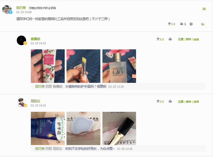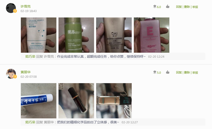 组图4学生找出自己家的精细化学品上传至学习平台
