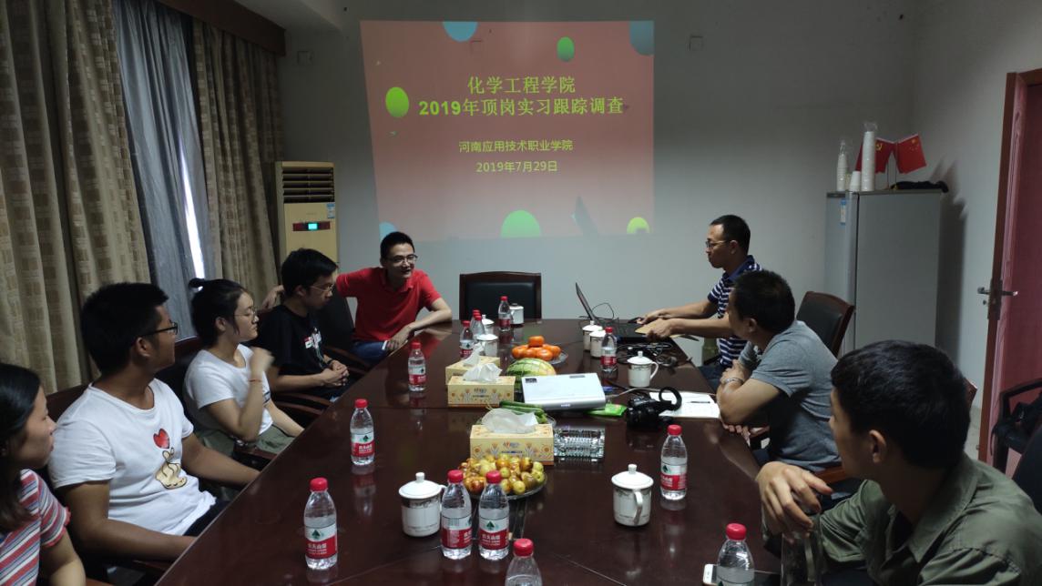 2019年7月27日,买球体育官方网站组织开展顶岗实习跟踪调查暨人才培养情况跟踪调研工作。学院书记蔡庄红、副书记朱冰、工业分析与检验教研室主任张慧俐参加了此次调研工作。
