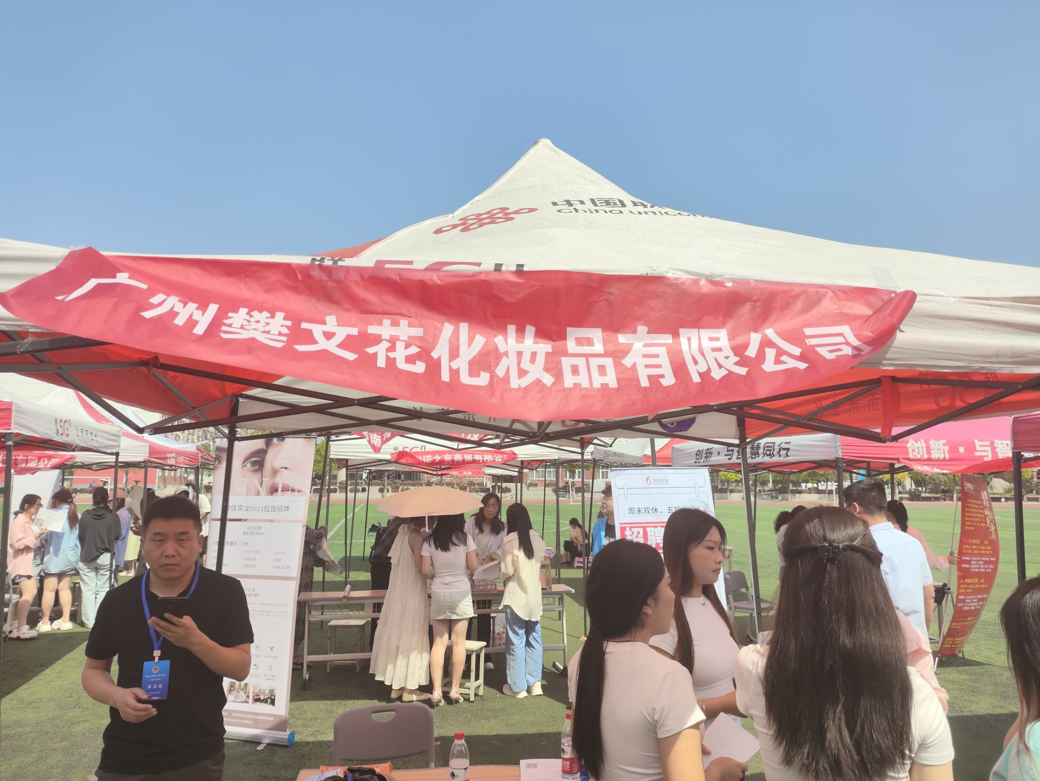 本次招聘会包含广州樊文花化妆品有限公司、润芳可(上海)生物有限公司等22家知名企业,为学生们带来了丰富的岗位选择和职业发展机会。各企业展位前人头攒动,学生们纷纷驻足咨询,了解企业概况、岗位需求及发展前景。