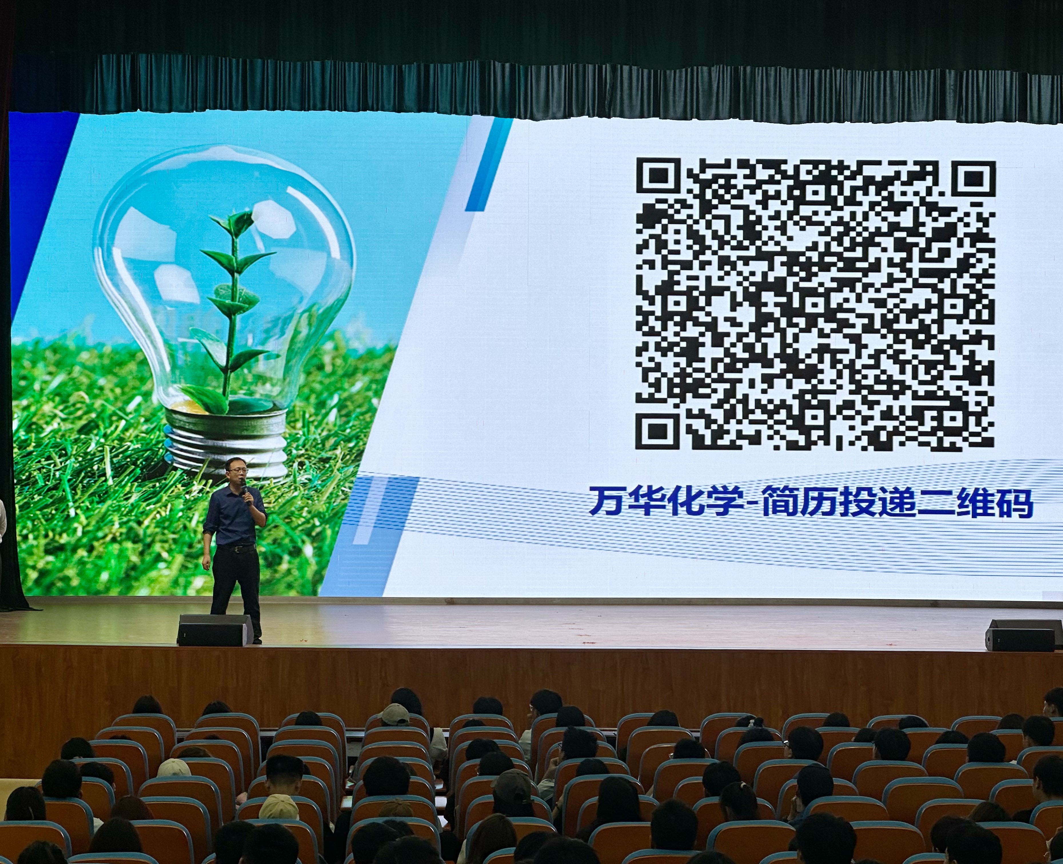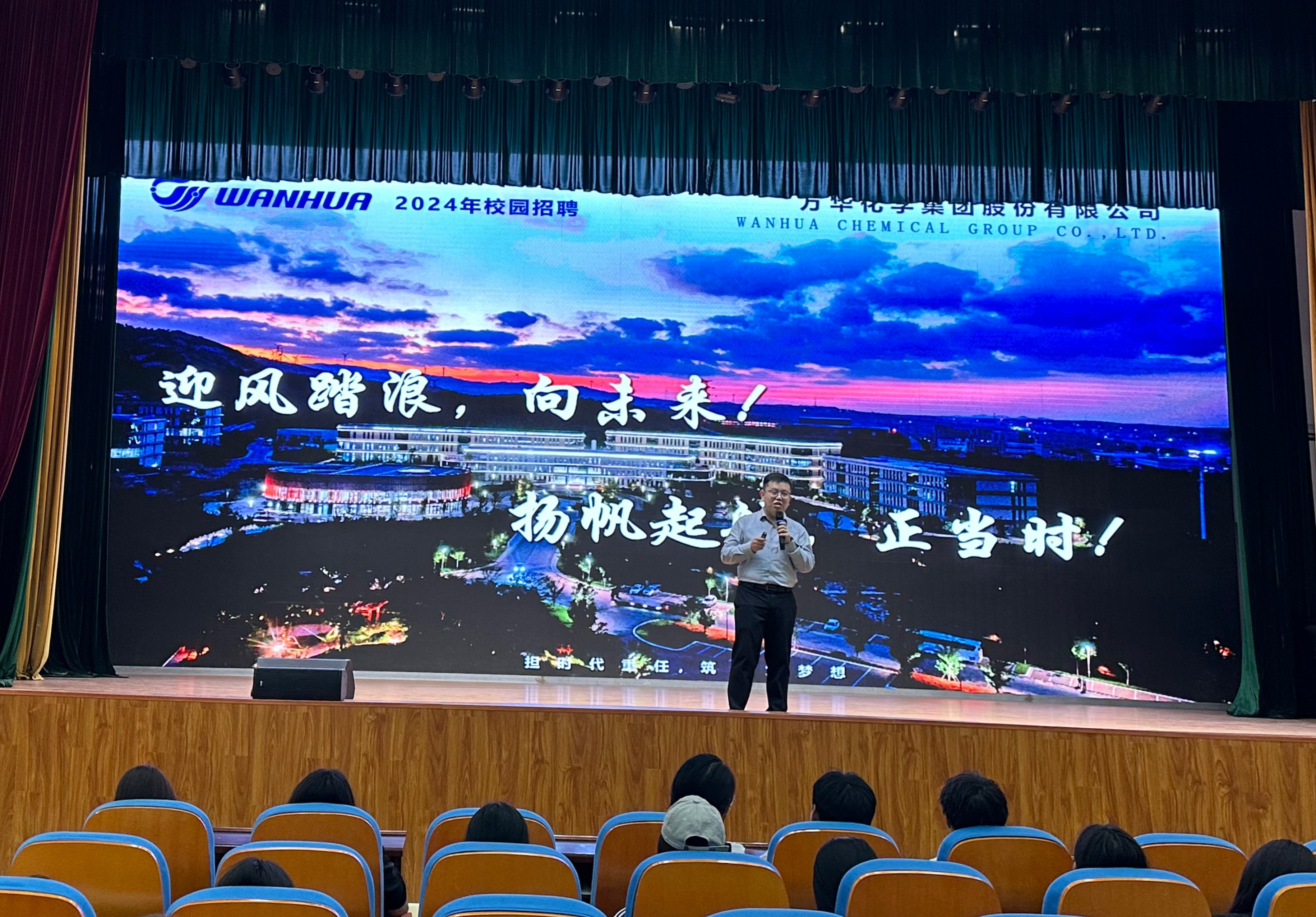 宣讲会在学生活动中心准时召开,万华化学集团负责人详细介绍了公司的发展历程、企业文化、业务范围以及未来发展规划,重点阐述了公司在人才培养、职业发展空间等方面的独特优势,展示了公司在化工新材料领域的卓越成就和不断创新的精神。