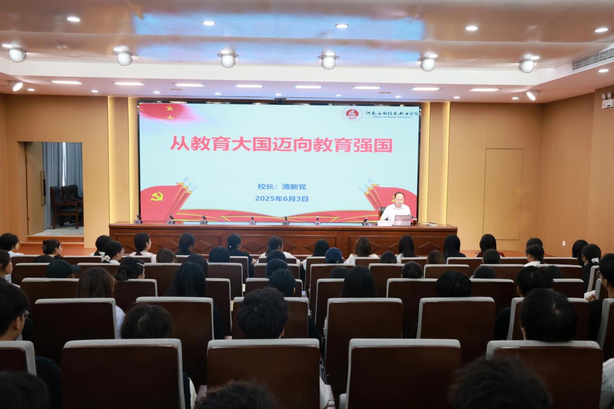 为深入学习贯彻习近平总书记关于教育强国的重要论述,引导学生深刻认识新时代强国建设的使命与责任,2025年6月3日,校长薄新党以《从教育大国迈向教育强国》为题,在郑州校区学术报告厅为买球体育官方网站学生讲授专题思政课。