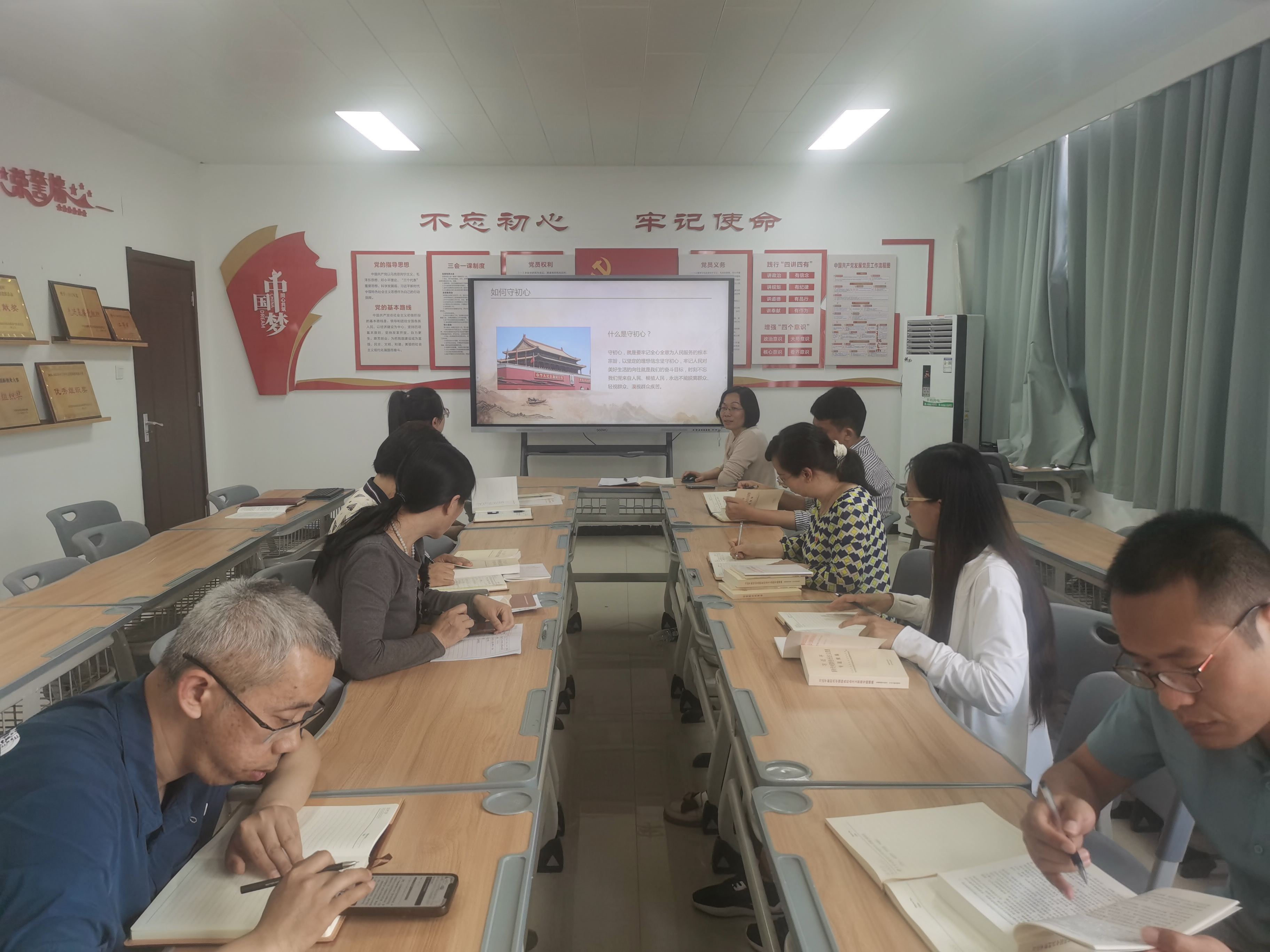 陈永惠围绕“如何守初心”“如何找差距”“如何担使命”“如何抓落实”等四个方面进行党课。她强调,一是守初心,明白干什么。通过分析学院发展形势,着重指出作为人民教师要审视自己,谨记入党的出发点。二是担使命,清楚该怎么干。大家需要紧紧围绕校党委的决策部署认真做,全力做。当前学习贯彻习近平新时代中国特色社会主义思想主题教育正在开展,学院双高建设任务较重,这就要求我们党员积极作为,勇于担当。三是找差距,了解自己的缺点。陈书记要求全体党员要从优秀的前辈身上找差距、从当下的时代榜样身上找差距,从身边的事例找差距。四是抓落实,撸起袖子加油干。再美的蓝图,如果不精细地分解为可操作的施工图,也不过是水中月镜中花,所以一定要重视“抓落实”。