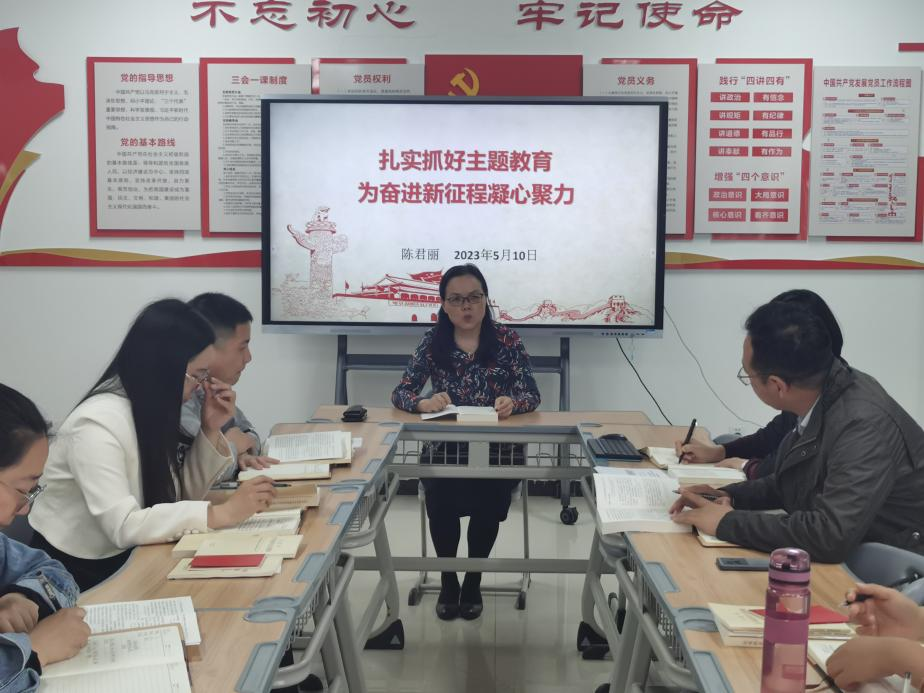 为扎实推进学习贯彻习近平新时代中国特色社会主义思想主题教育工作开展,5月10日上午,学校副校长陈君丽到买球体育官方网站领学促学,买球体育官方网站全体党员参加了学习。