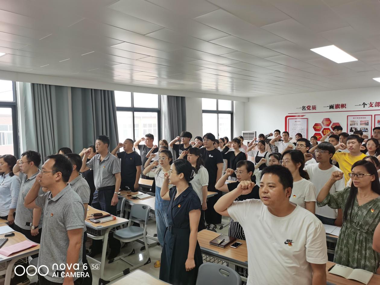 为隆重庆祝中国共产党成立100周年,推动党史学习教育入脑入心、走深走实,进一步提升党员的政治觉悟,强化新时代党员的党性教育。6月17日下午,我校买球体育官方网站党总支在A512开展了新党员入党宣誓及老党员重温入党誓词活动,全体教师党员、43名预备党员参加了入党宣誓。