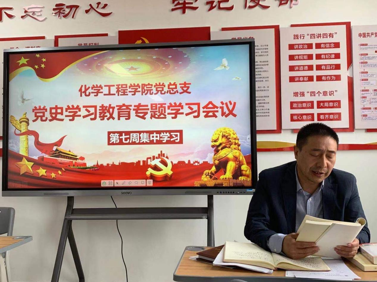 4月20日,化工学院党总支在A512党员活动室开展第7周党史学习教育专题集中学习,会议由总支书记蔡庄红主持。