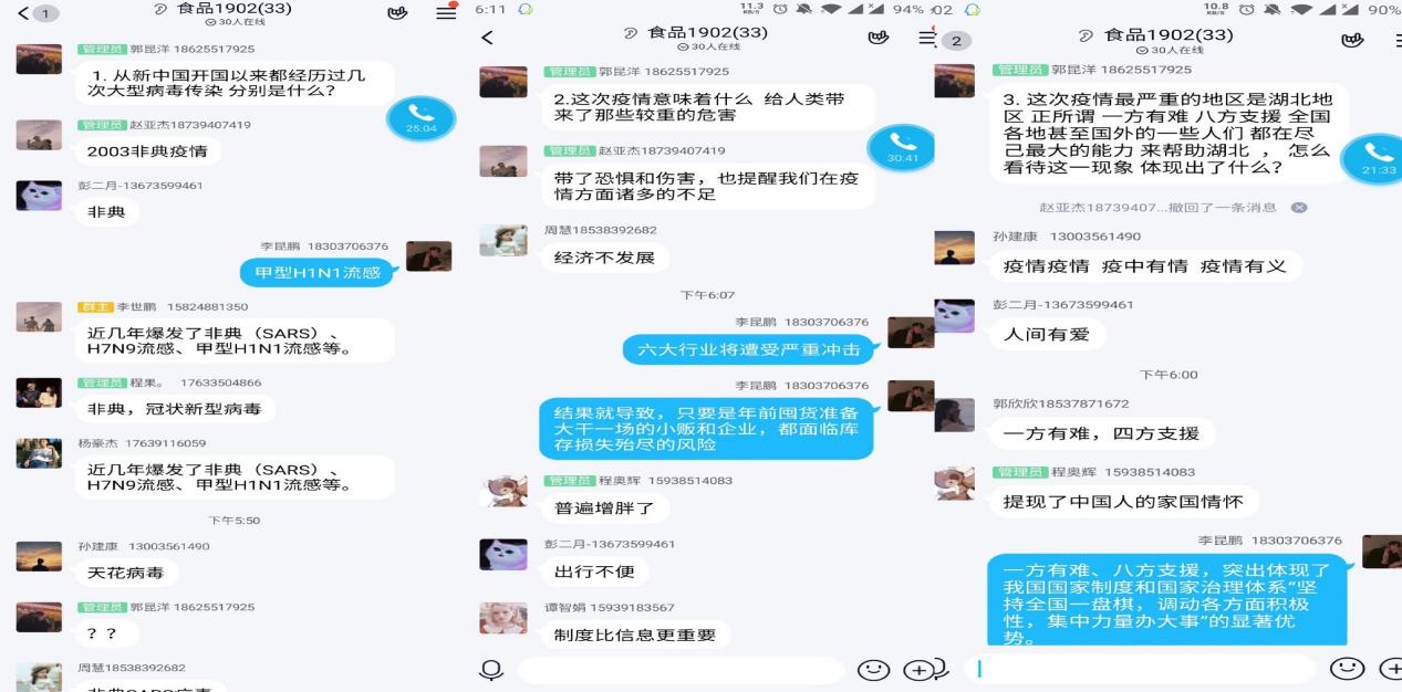 在抗击新冠肺炎疫情的关键时刻,买球体育官方网站积极发挥课堂教学主阵地作用,落实立德树人的根本任务,全面落实“停课不停学”文件精神,做到线上教学有序开展,“云”班会定期召开,将课程教学与疫情防控知识宣传结合在一起,将学生思想教育同了解学生动态结合在一起,将学生情况排查同学生心理问题一对一辅导结合在一起,全力落实“三全育人”的指导思想,师生教学相长,共同用行动践行时代使命,彰显青春担当。