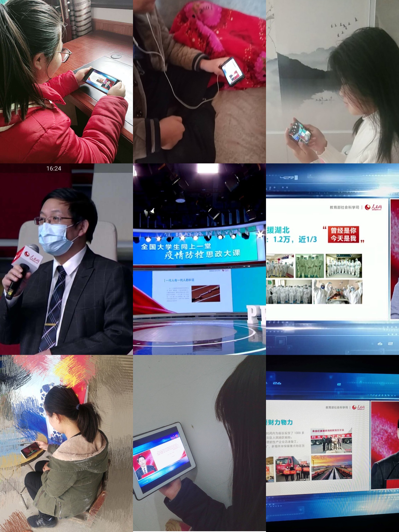 9日下午两点半,思政课开始直播,视频网站低估了大学生的参与性,造成了一时间的崩溃,然而这并未影响了大家上课的热情。师生们尝试各个网络和app平台,分享可以观看的链接。一些班级组织大家通过qq屏幕分享等方式来观看直播,只要有一个同学可以链接到直播,就可以分享给大家。20分钟后,视频网站趋于稳定,部分师生自行观看,一部分学生按班级组织观看,观看过程中,学生积极讨论留言,发表自己的看法。