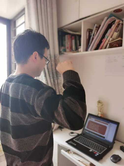 最后,党委委员赵玉奇同志带头和全体党员一起在手机、电脑屏幕前,举起右手,共同宣读战疫誓词,用誓言表达大家防疫和争做先锋的决心。