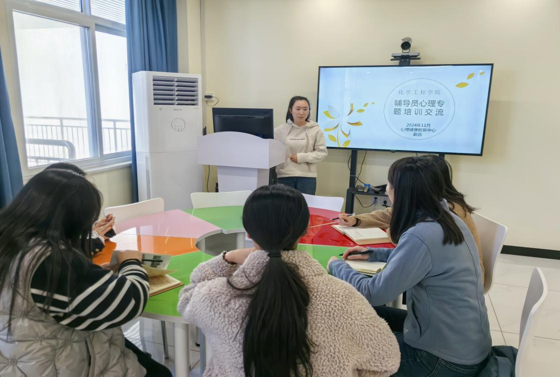 为进一步加强大学生心理健康教育,提升辅导员队伍的心理健康教育工作水平,增强对大学生心理健康问题的认识与处理能力,11月29日下午,买球体育官方网站在校心理督导室成功开展了辅导员心理专题培训交流会。本次活动邀请了学校心理健康中心的赵容老师作分享交流,学院全体辅导员参加了此次活动。
