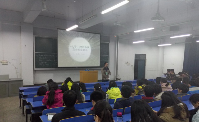 2015年12月3日,化学工程系在B102和B101教室分别对14级和15级在校学生召开了2015年冬季安全动员会。会议由系书记朱冰老师主持。