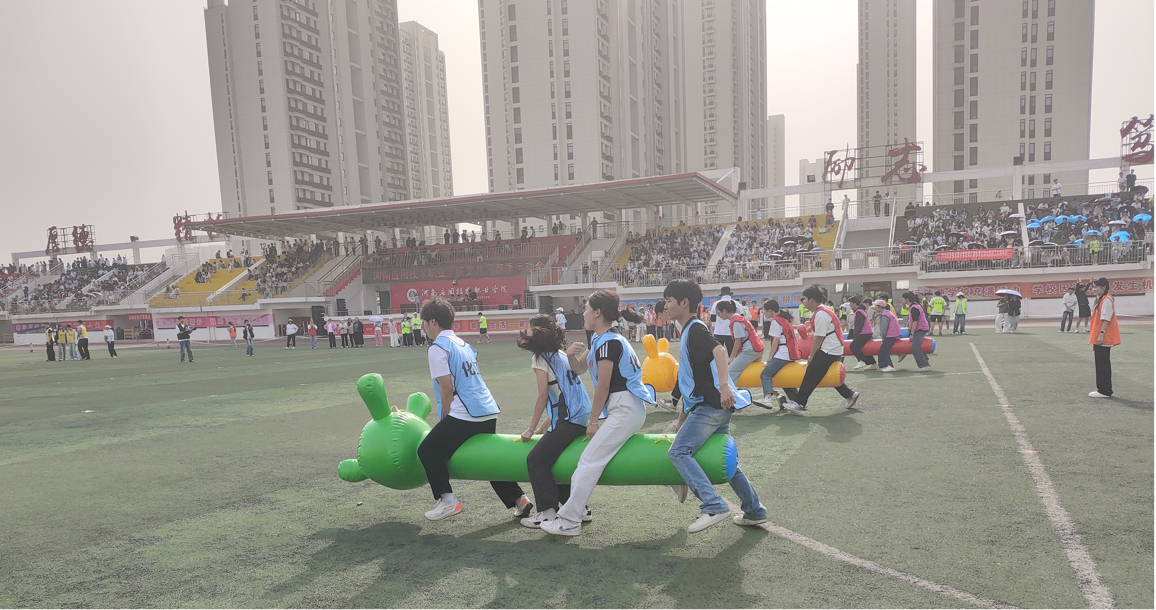 除了紧张激烈的竞技项目,本届运动会还设置了趣味运动环节。毛毛虫比赛中,每个小组口号整齐,脚步划一;运转乾坤比赛中,大家合力,将大球托举头顶,奋力冲过。这些活动不仅增进了同学间的情谊,更展现了团队协作的魅力,让大家在运动中收获快乐,在合作中感受温暖。