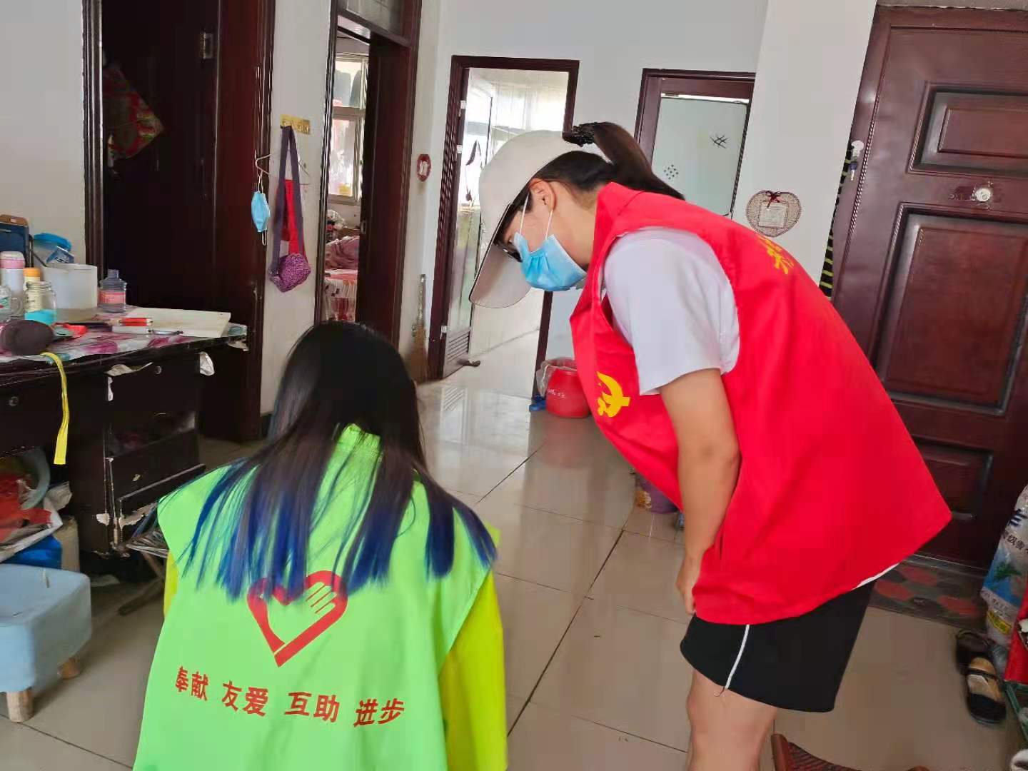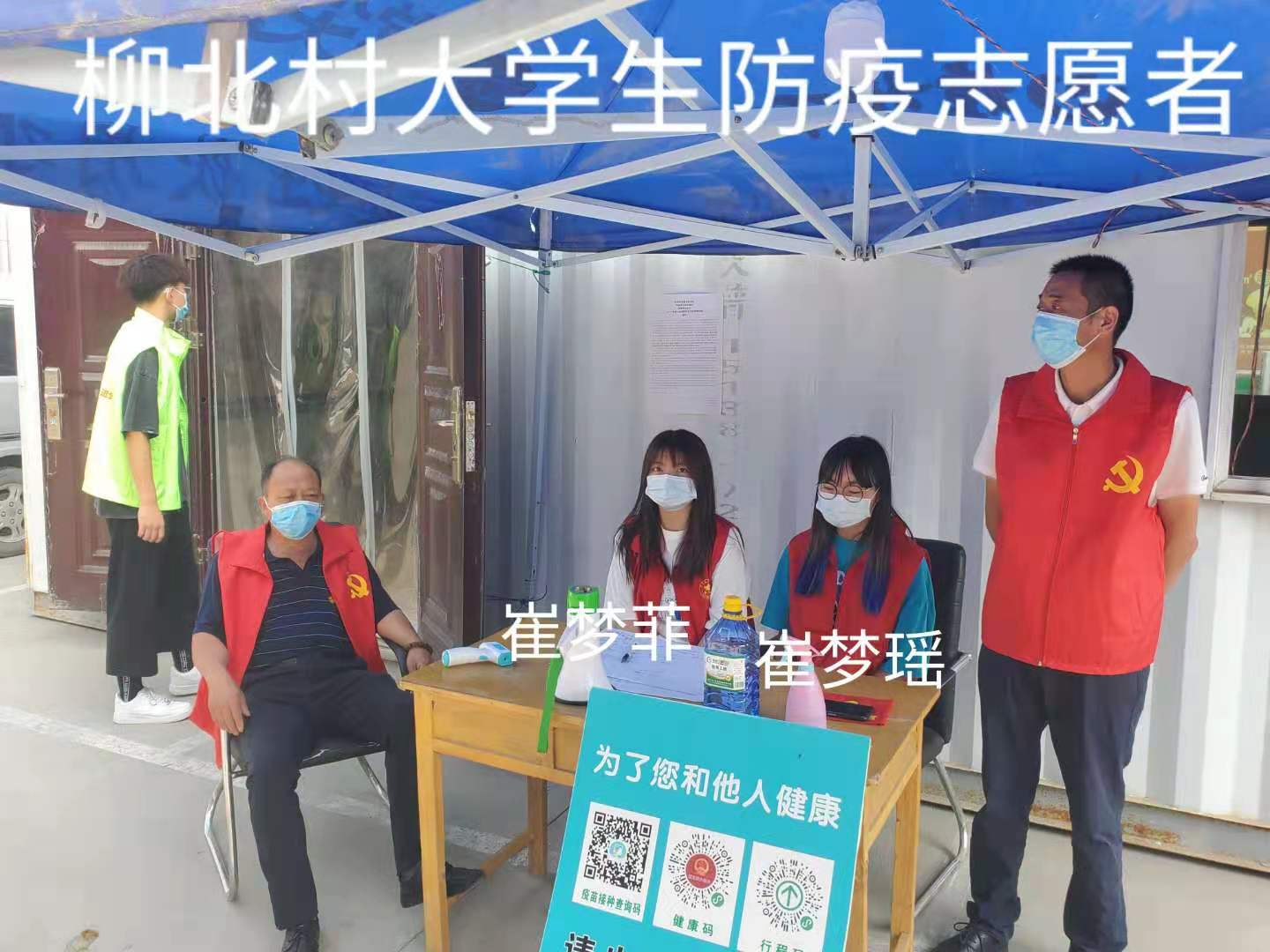 化妆品2002班学生崔梦瑶,暑假期间积极响应号召,在濮阳市范县白衣阁乡柳行头村社区金鼎小区参加大学生志愿活动,只要工作是为社区来往成员测量体温、扫健康码,协助社区核酸检测预登记,统计社区人口等。