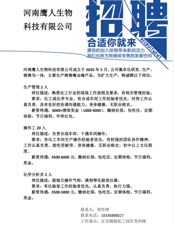 上一条:江苏联化科技有限公司招聘简章 下一条:昊华骏化集团有限公司招聘简章